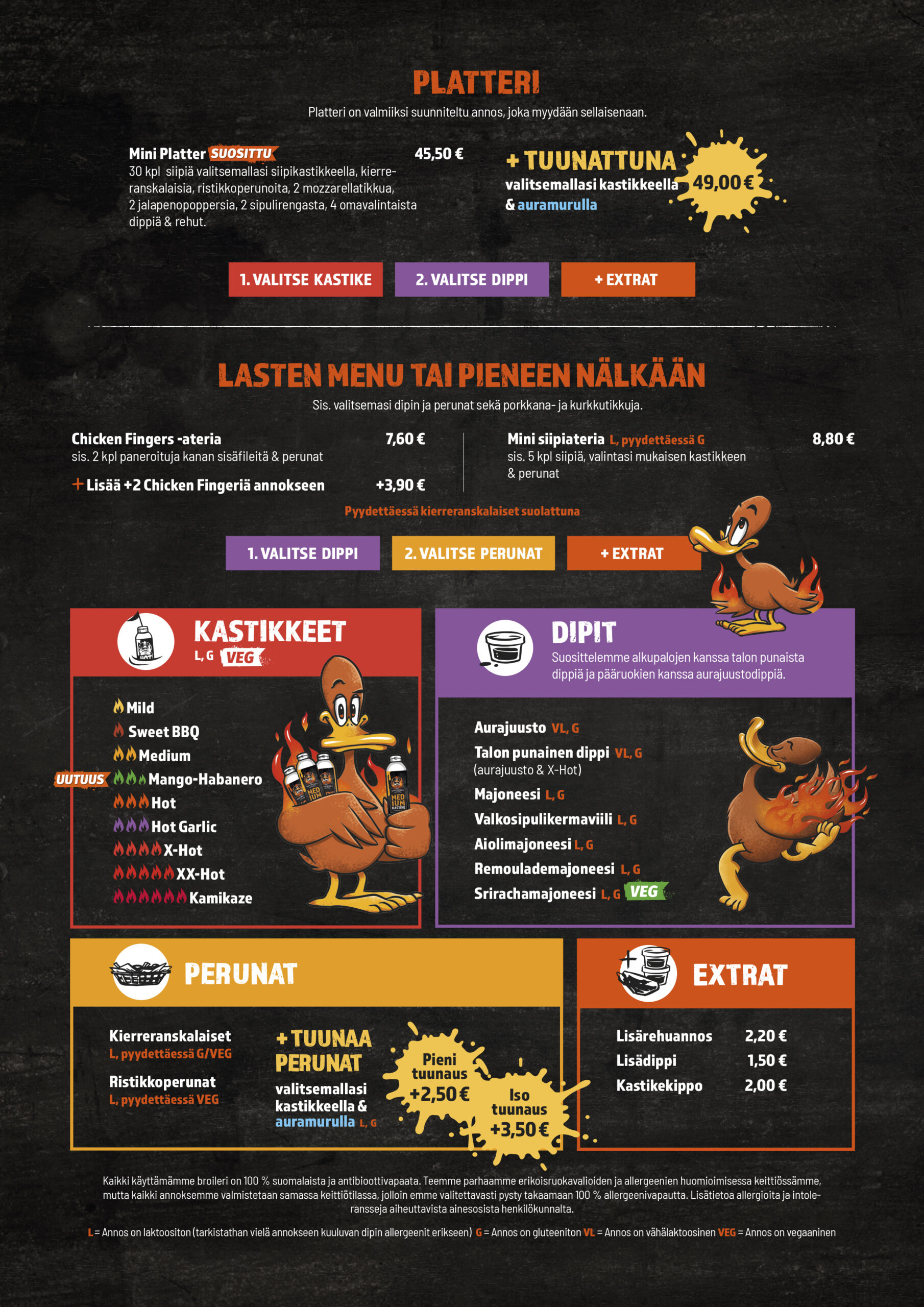 • Lisäksi viikoittain vaihtuvat perunat ja spesiaalituote